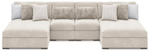 • Modular pieces can float anywhere; sides are finished (with no connectors); versatile modular pieces fit together in a variety of configurations