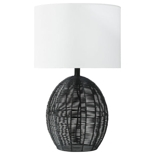 This table lamp combines natural textures with modern craftsmanship, featuring a rounded black rattan base that adds visual intrigue. Paired with a...