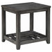 This coffee table set blends rustic charm with versatile functionality, making it a perfect addition to any living room. Constructed from engineered wood with pine veneer, each piece features a grey finish with wood grain accents for a timeless appeal. The coffee table offers a spacious rectangular top and a slatted lower shelf, while the end table includes a matching square top and shelf for cohesive design and utility. Clean lines and sturdy tapered legs complete the look, ensuring durability and style.