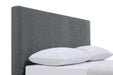 Basic design principles reflect elegant simplicity in this stylish platform bed, an ideal choice for a sophisticated and uncomplicated bedroom space. Modern in motif, its clean lines and textured gray fabric upholstery deliver both versatility and class. This bed offers a seamless padded headboard, and padded side rails and footboard, adding up to an ideal mattress enclosure without the need for a box spring. Pine wood and plywood construction offer a steady build to this tasteful bed. Includes subtle black finish feet.