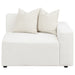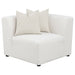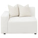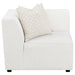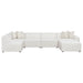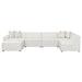 Create an elegant, contemporary entertainment area with this sophisticated six-piece sectional set, upholstered in an easy-to-clean pearl performance fabric and complete with foam padded pocket coil seats, low-profile attached backrests, and a wide track arm. Designed for complete versatility and play, this elegant modular sectional shifts around as desired, creating the perfect configuration for entertaining family and visitors.