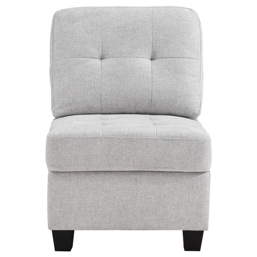 Customize a sectional that suits your space with a modern armless corner chair. In soft beige upholstery, it's the perfect centerpiece for your Geo...