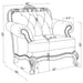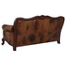 Complete with classic silhouettes, this three-piece set is stunning in any living room or den. Includes a sofa, loveseat, and chair in rich tri-tone top grain leather upholstery. Elegant button tufting elevates the plush cushioning with luxury. Sturdy and supportive, the kiln dried hardwood internal seat frames feature pocket coil seating. Rich hues from the fabric and wood warm up spaces with sophistication, upscale with decorative molding and individually placed nailheads.