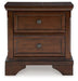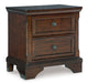 This nightstand has a timeless look and traditional design that dresses up your bedside area. Its warm brown cherry finish adds a casual classic aesthetic, while round metal knobs in a dark bronze tone create a beautiful focal point on two stylishly subtle drawer fronts.