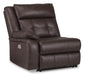 Elevate the everyday with this power reclining sectional. With easy one-touch reclining and spacious seating, the piece offers relaxation and unparalleled coziness. Its faux leather upholstery is comfortably practical and beautifully enhanced with stylish contrast stitching. Factor in ample padded arms and a tufted lumbar area and you’ve got the perfect spot to wind down.