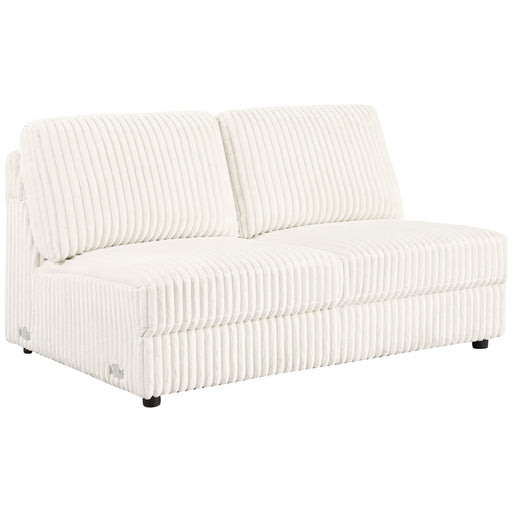 Coaster Z2 StandardAdd versatile seating to your sectional with the armless loveseat, upholstered in ivory wide corduroy. This piece offers plush comfort and easily f...