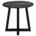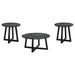 This coffee table set features a black marble-like top and sturdy solid rubberwood bases in a bold black finish. The high-pressure laminate surface offers the elegance of natural stone with exceptional durability and easy maintenance. The sleek, modern design of these occasional tables blends clean lines and sculptural bases, making them a perfect addition to contemporary living rooms. This set provides both style and functionality, serving as an elegant focal point for your space.