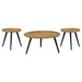 This coffee table set combines mid-century style with rustic charm for a cohesive living room centerpiece. Featuring solid mango wood tabletops, each piece showcases natural wood grain patterns and softly beveled edges with carved circular details for a refined touch. Sturdy black powder-coated iron legs provide a modern industrial contrast and stable support. Perfect for compact spaces, this versatile occasional set delivers functional elegance while complementing a variety of decor styles.