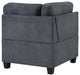 Customize a sectional that suits your space with a modern armless corner chair. In soft beige upholstery, it's the perfect centerpiece for your Georgina collection sectional sofa, creating a turn just where you need it to suit your living room. The corner features tufted cushions, one seat and two back, and sinuous spring decking under the seat, offering impressive comfort and support. Legs are a black finish tapered block style, complementing surrounding decor while offering stability and support. This sectional piece is constructed with Asian hardwoods and plywood for optimal strength and durability.